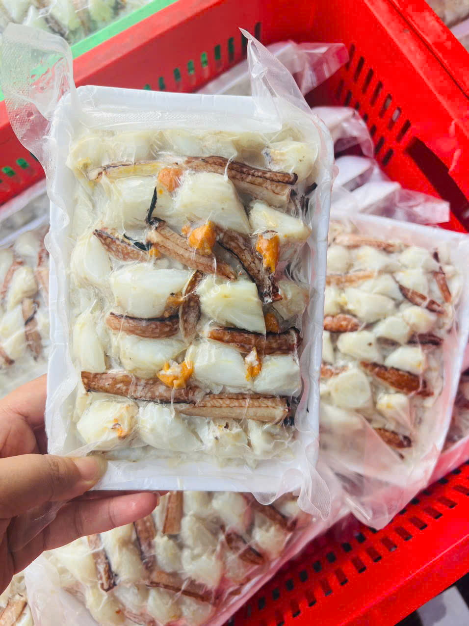 - Cấp đông nhanh chóng, giữ trọn độ tươi: Ngay sau khi bóc tách, nõn ghẹ được cấp đông sâu bằng công nghệ hiện đại. Quá trình này giúp khóa chặt độ tươi ngon, hương vị và các dưỡng chất thiết yếu của ghẹ như protein, canxi và các vitamin nhóm B.