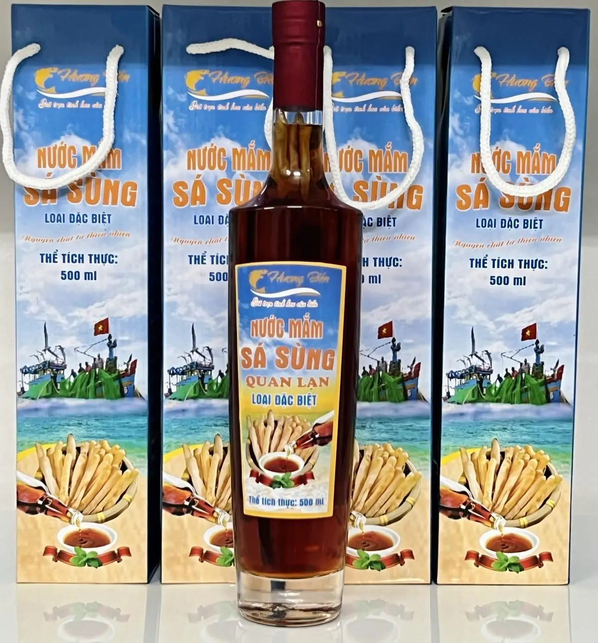 Nước mắm sá sùng truyền thống là sản phẩm lên men tự nhiên từ cá biển, sá sùng và muối theo phương pháp ủ chượp thủ công truyền thống, không sử dụng hóa chất hay phụ gia. Sản phẩm này trải qua quá trình thủy phân protein cá, sá sùng thành các axit amin có lợi, tạo ra hương vị đậm đà, thơm, ngọt đặc trưng với màu cánh gián đẹp mắt và vị ngọt hậu cuốn hút phù hợp với hầu hết các món ăn mâm cơm Việt.